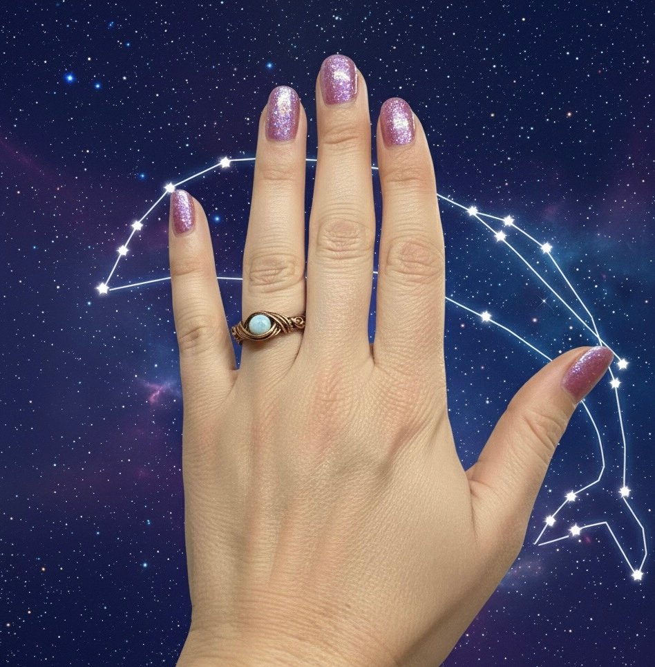 Escape to the serene waters of the Caribbean with this stunning Larimar (Dolphin Stone) and Copper Ring!