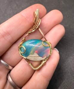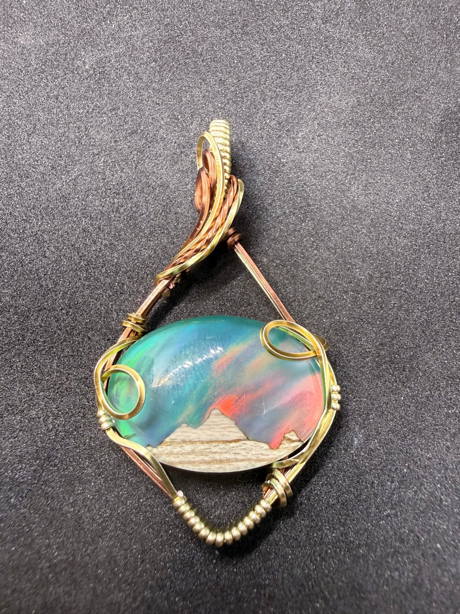 Celestial Peaks: Opal & Mixed Metal Wire-Wrapped Pendant