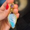 Ethereal Glow” Labradorite & Opal Gold-Wire Pendant