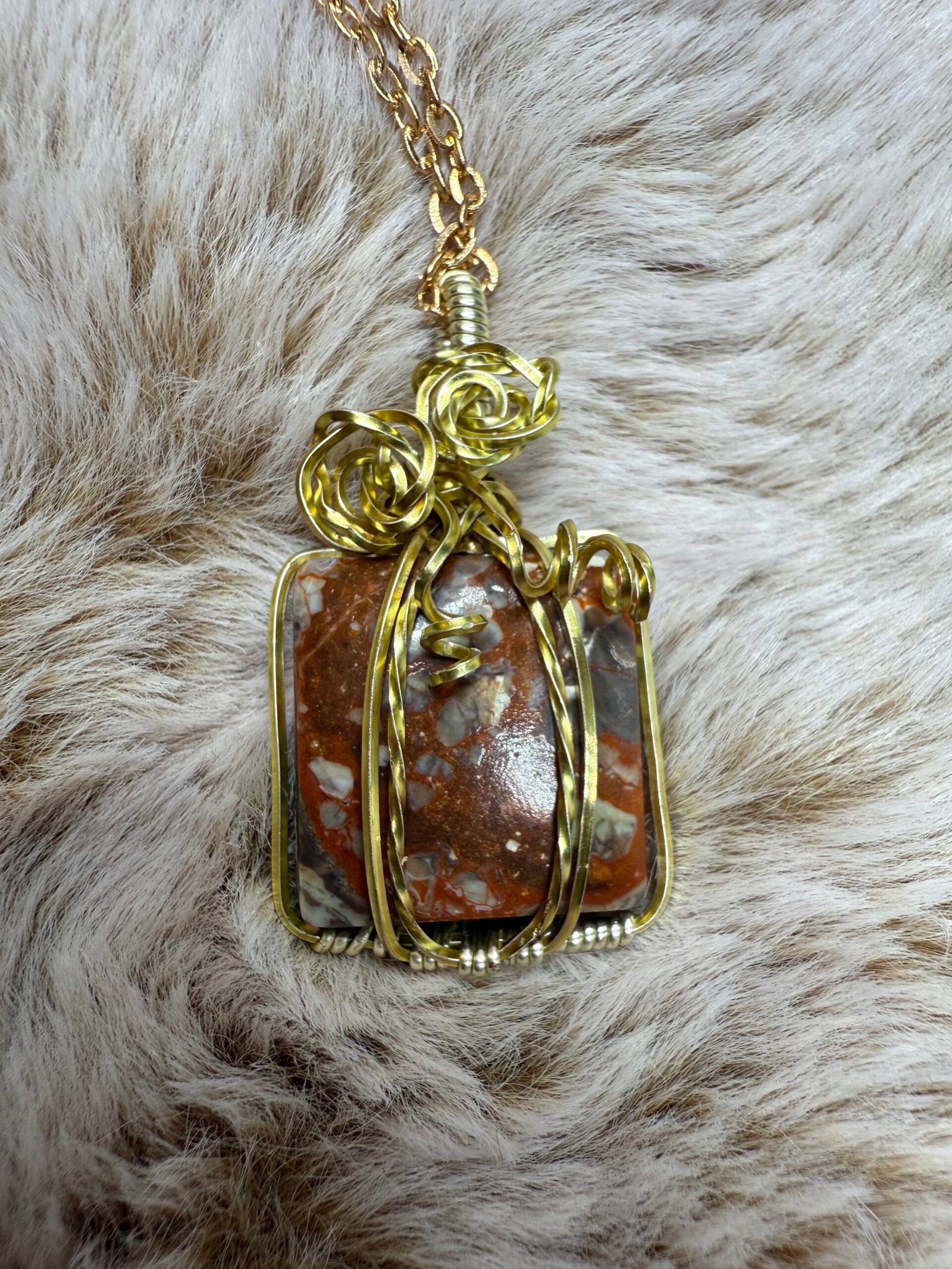 This stunning pendant, featuring a gorgeous Red Jasper stone wrapped in intricate gold-toned wire, is the perfect square-shaped surprise to put under the tree!