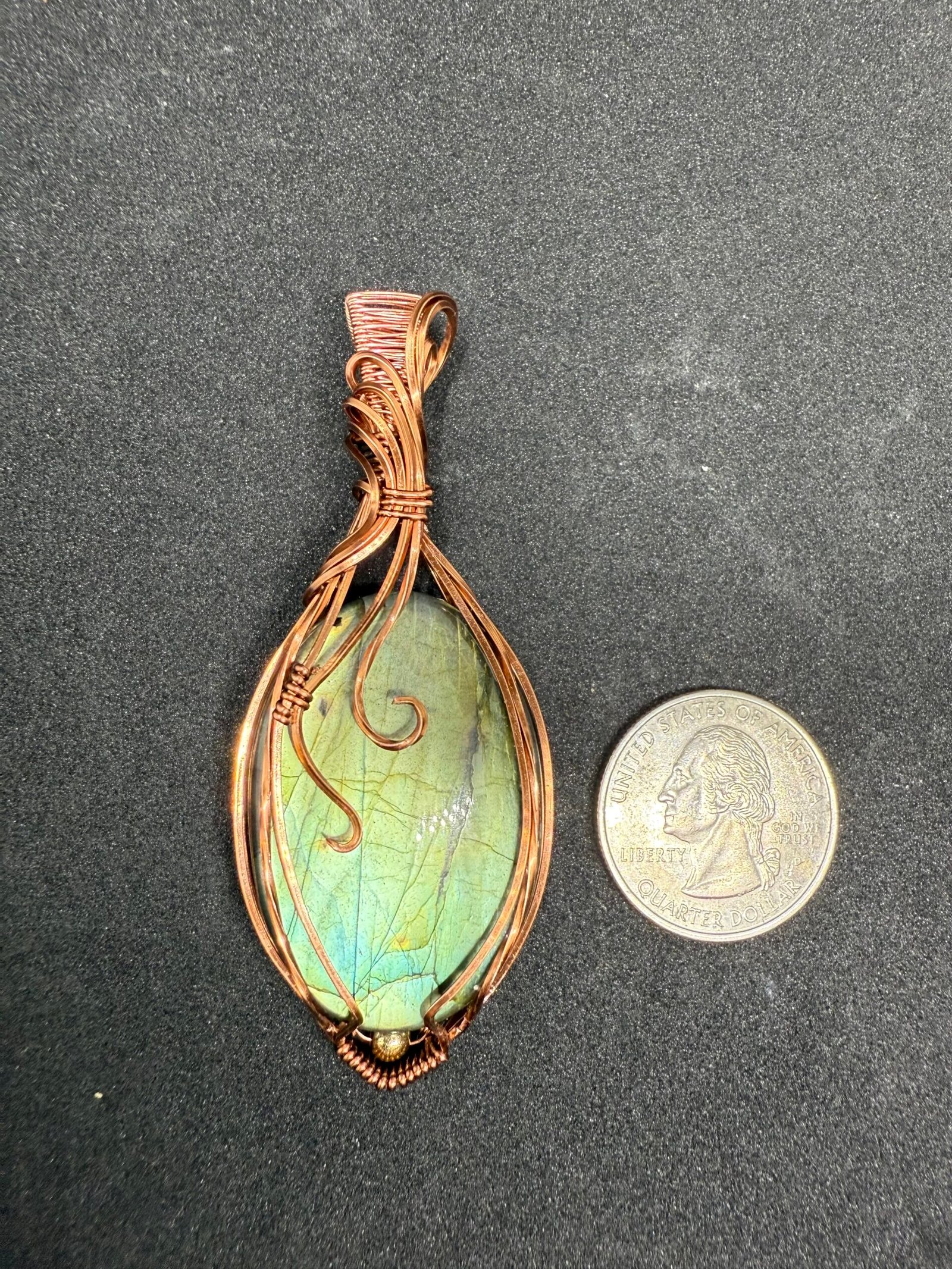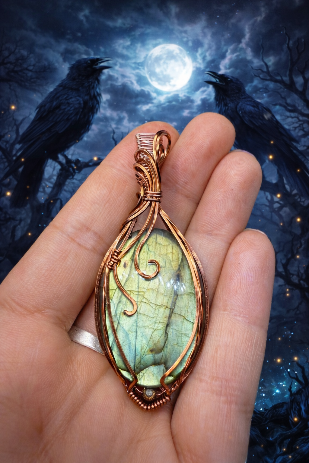 A hand-wrapped labradorite set in protective copper, the Ravenward Copper Talisman is a guardian pendant designed to shield energy, ground the spirit, and awaken inner knowing.