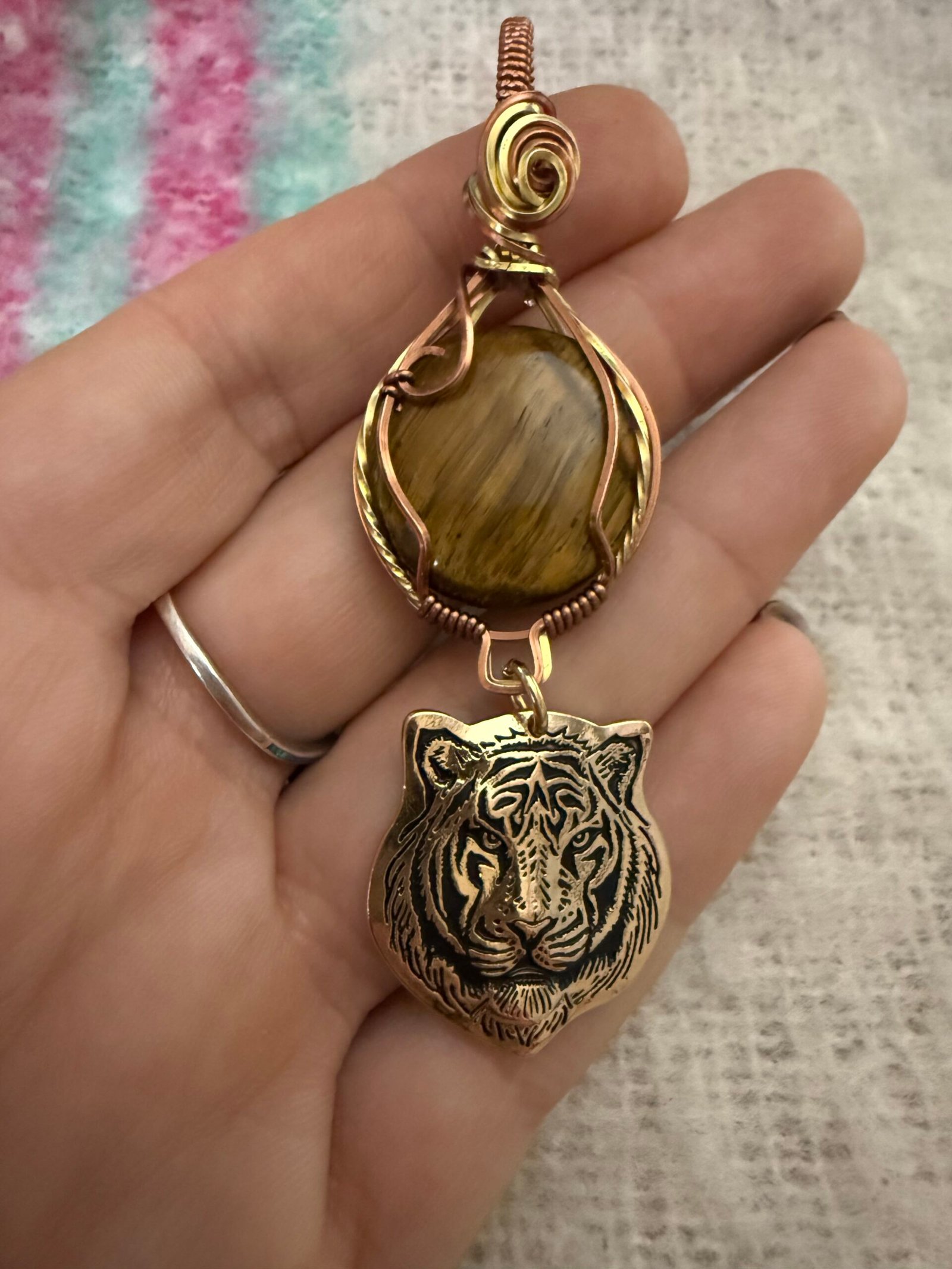 I created this piece as a reminder of inner strength and sovereignty. Featuring a bold Tigerβs Eye stone known for its ability to release fear and grant mental clarity and a golden feline spirit, this pendant is about standing in your power.