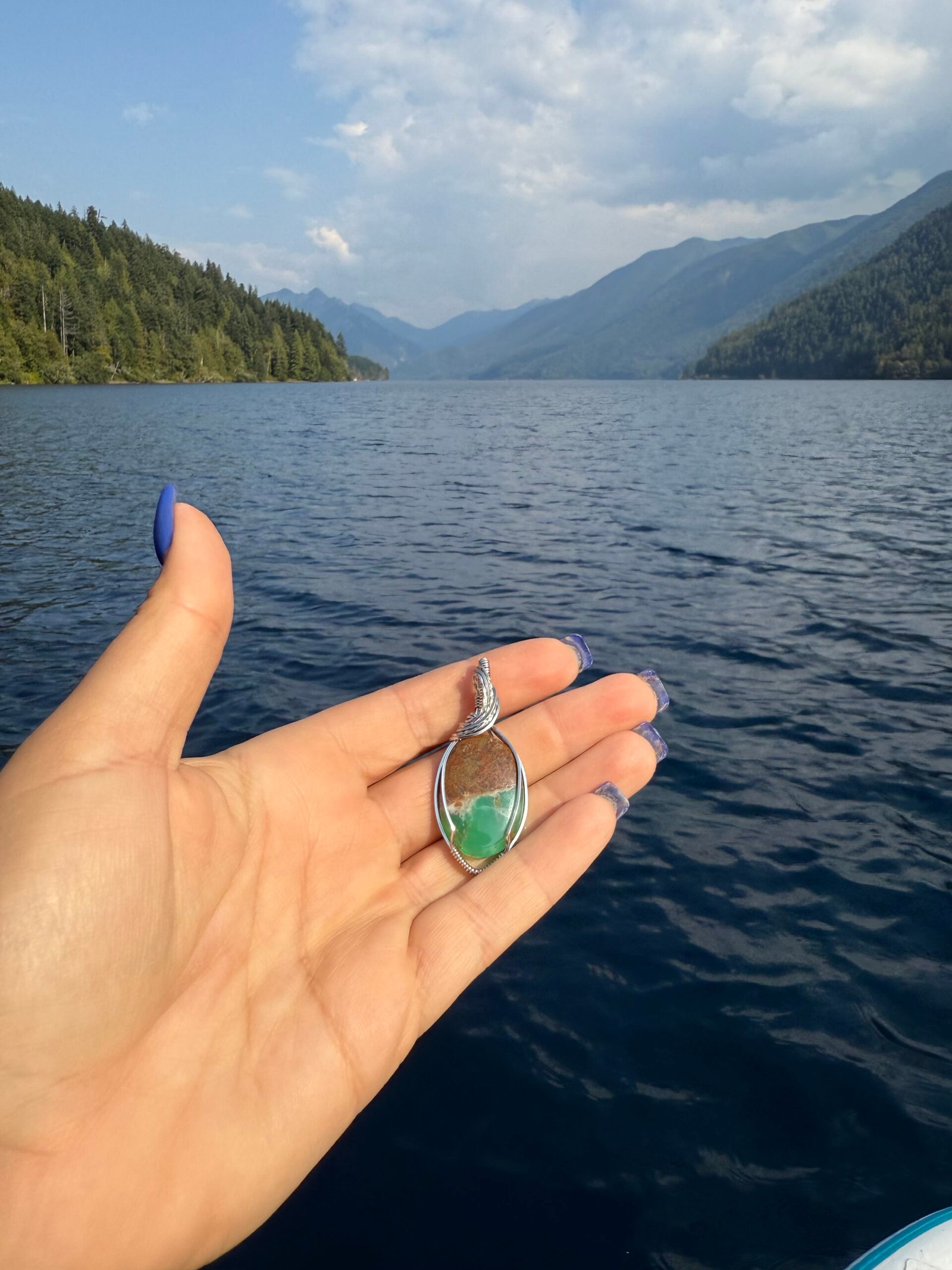 ✨ A statement piece for nature lovers, healers, and adventurers who want to carry the calm energy of water, forest, and stone close to the heart.